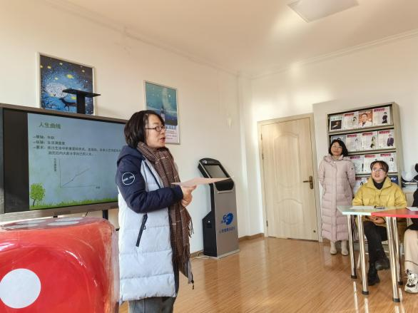 最后,黄丽老师对本次团体辅导做小结。黄老师指出,在‘掷骰子‘活动中,老师们在回答随机问题的同时也呈现了生活的多面性。在‘人生曲线‘活动中,看见老师们在人生这个充满不确定性的旅程中展现出来的勇敢、坚持和积极思维。