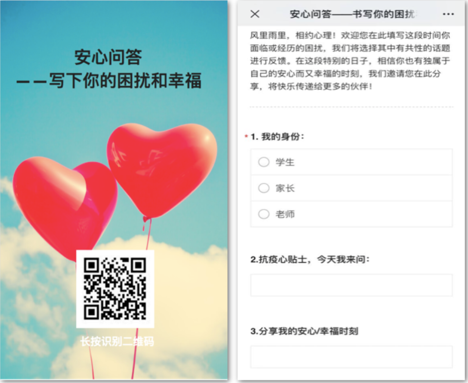 此外,心理教研组还通过发布网络问卷,收集疫情期间学生面临的困扰,积极给予反馈的同时也引导师生及家长关注积极的情绪体验。
