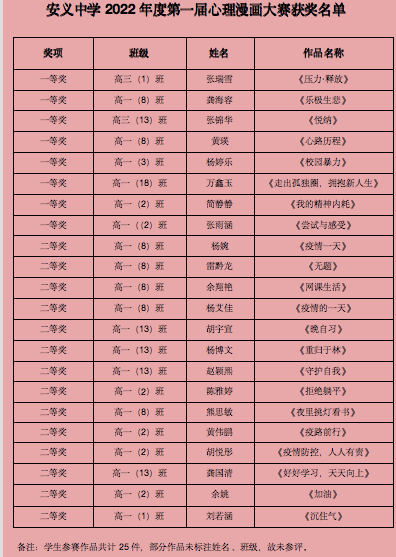 安义中学2022年心理健康宣传月活动总结