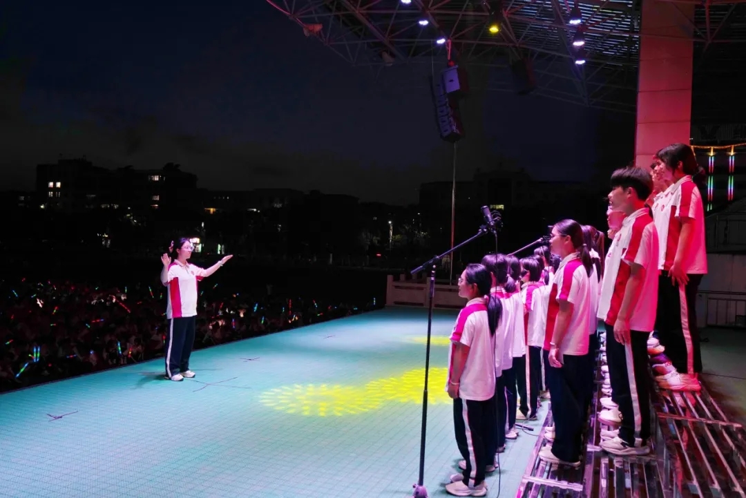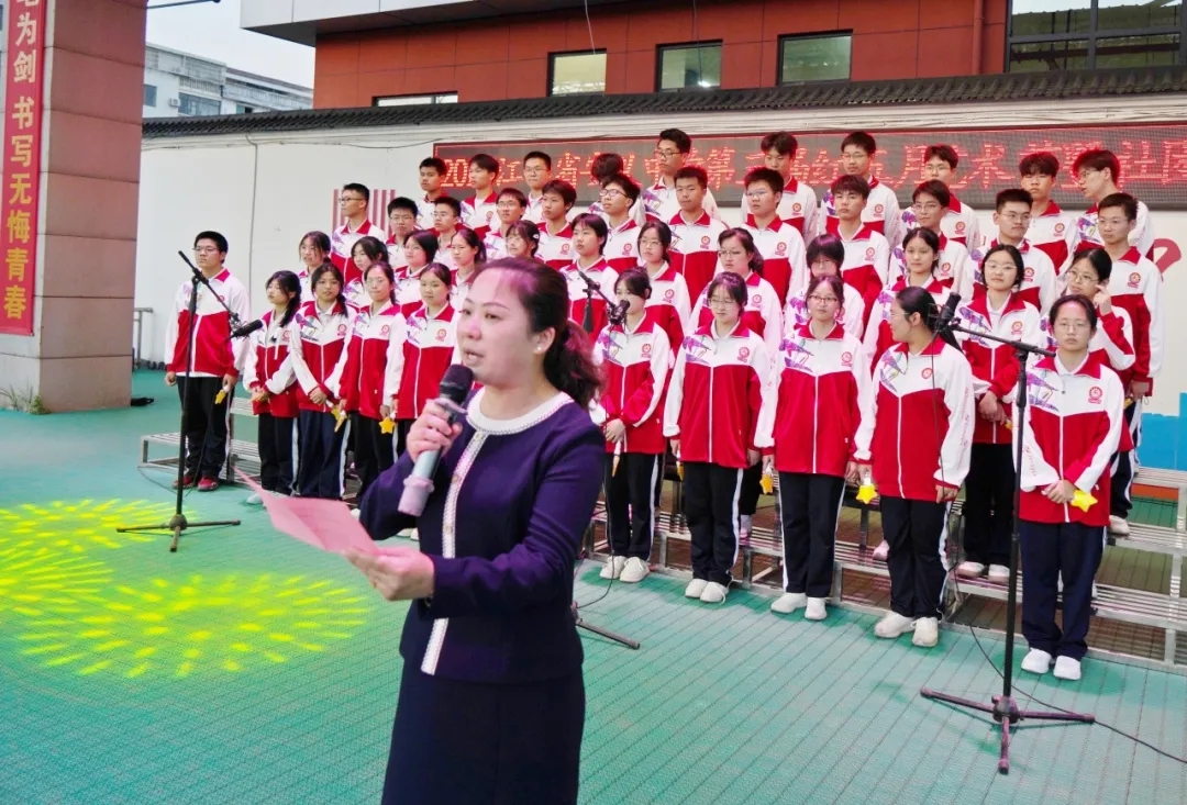为传承红色基因,唱响爱国情怀,凝聚奋进力量,2025年5月12日晚,江西省安义中学第三届红五月艺术节暨社团展示活动在体育场盛大开始。活动伊始,刘婷婷校长上台致辞,她为同学们讲述红歌背后的故事和精神,为这场盛宴注入了厚重的精神底色。