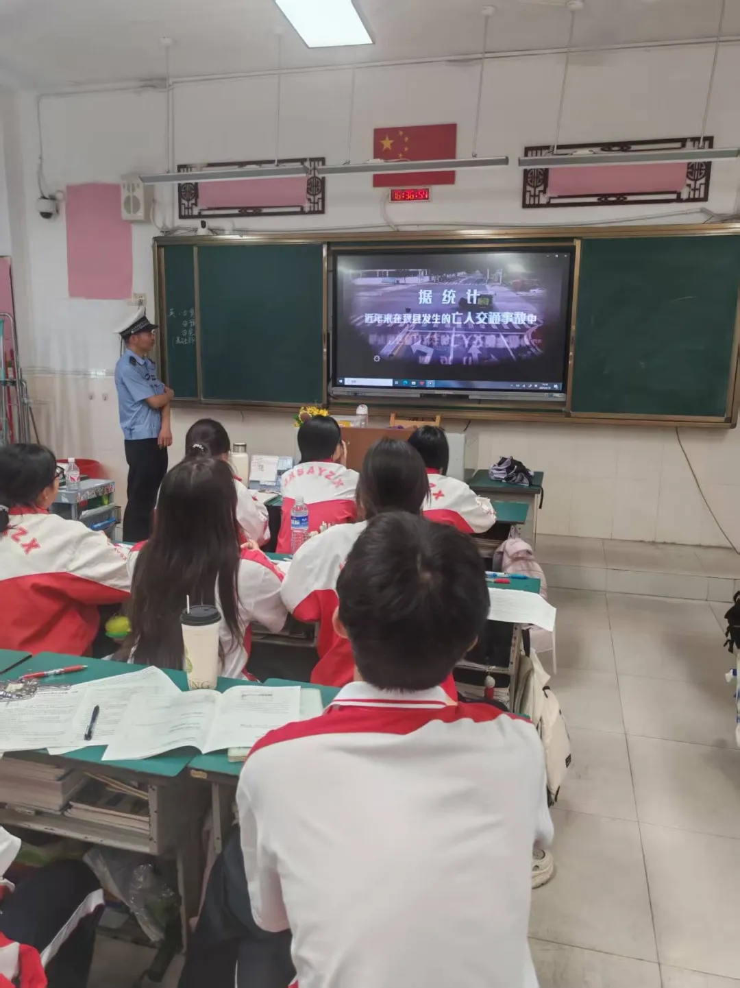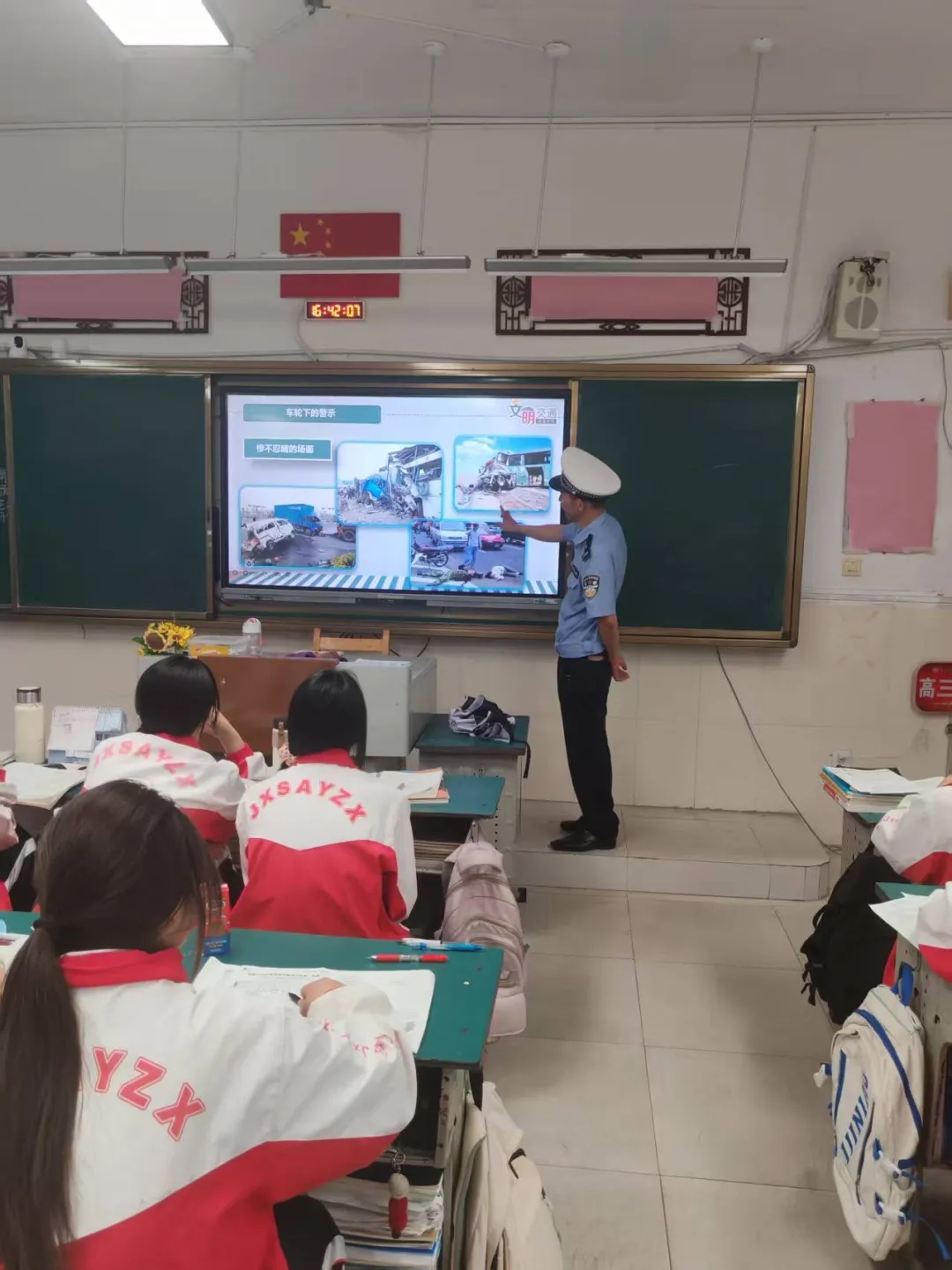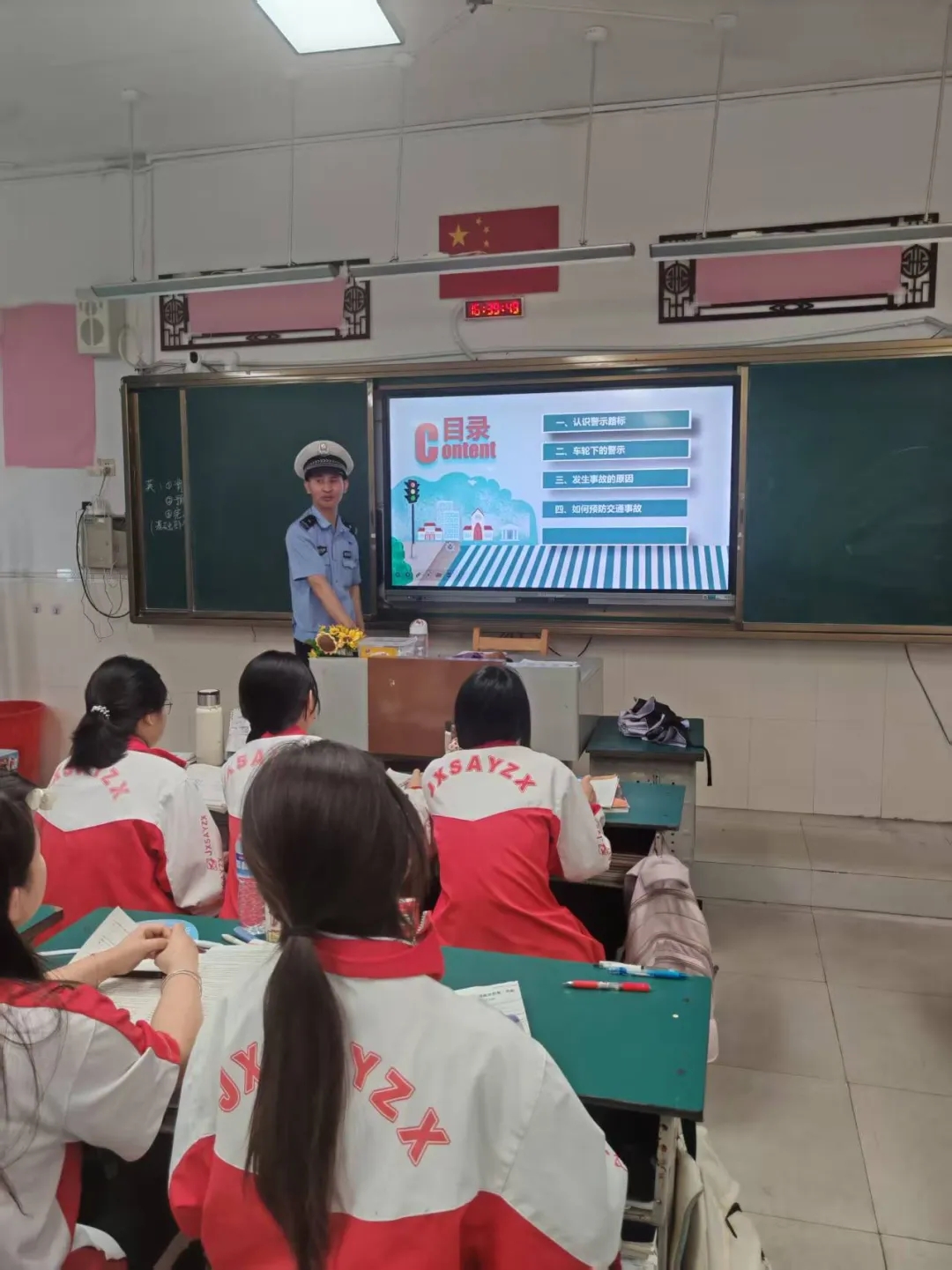 6月19日下午第三节课,安义交警大队与我校携手开展‘交通安全伴我行‘活动,熊卫民警官走进课堂,围绕‘认识交通标识、车辆安全距离、交通事故的原因、如何预防交通事故‘展开讲解,还为同学们发放《安全出行倡议书》,多维度筑牢出行安全防线。