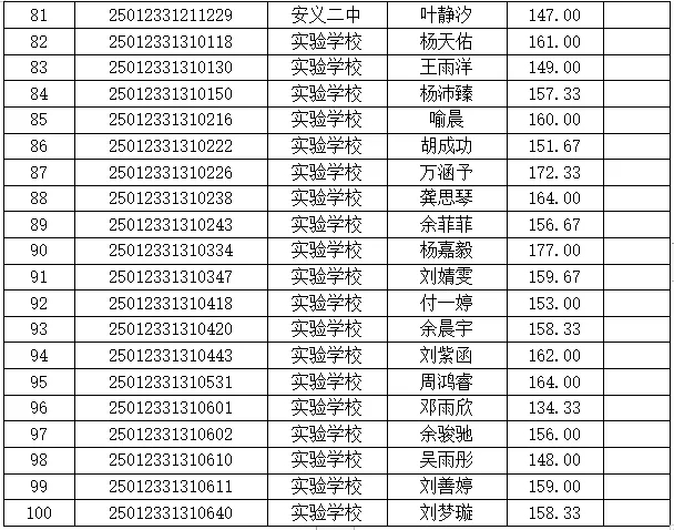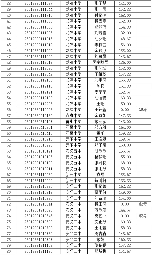 安义县2025年中招美术特长生专业报考安义中学考生测试成绩公示
