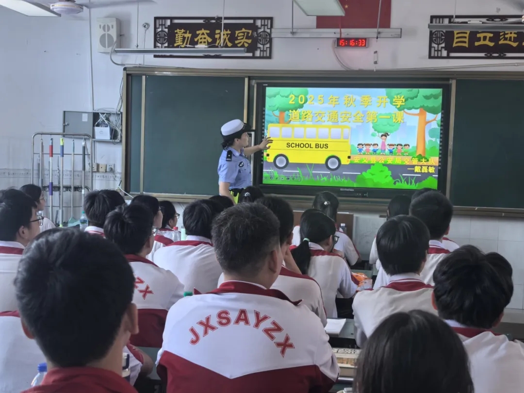 2025年秋季开学之际,为筑牢学生出行安全防线,有效降低校园周边交通安全事故风险,安义县公安局交管大队民警走进安义中学,为高二(23)班的同学们带来了一场兼具实用性与感染力的‘道路交通安全第一课‘,用专业知识为青春成长保驾护航。