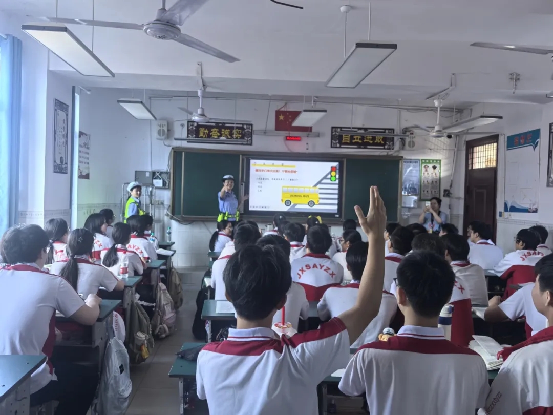 此次交通安全进校园活动,是安义中学守护学生平安成长的重要举措。‘警示先行+知识讲解+多轮互动+课后延伸‘的科学流程,让交通安全知识真正入脑入心,既提升了学生的交通安全素养,也为校园及周边营造了安全、有序、文明的交通环境。