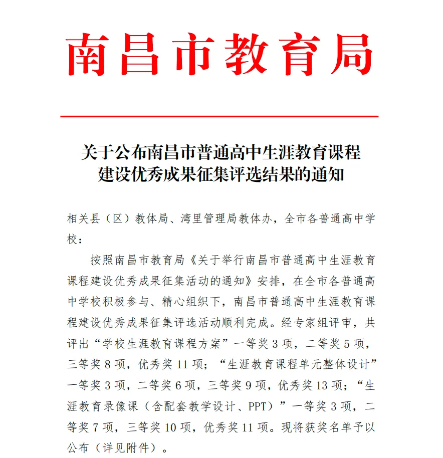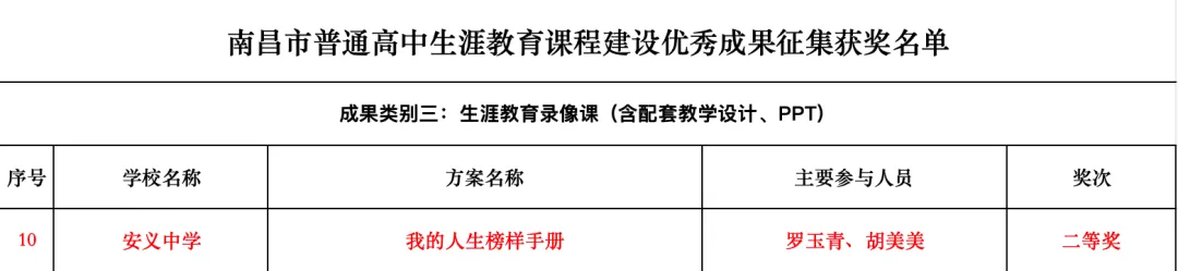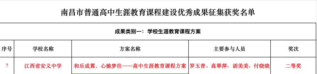 ——安义中学在南昌市普通高中生涯课程建设优秀成果评选中喜获佳绩!