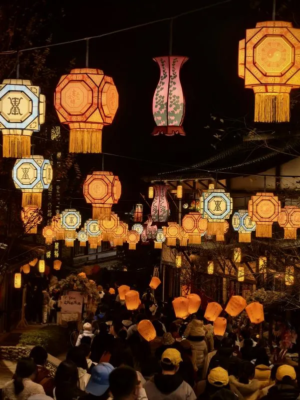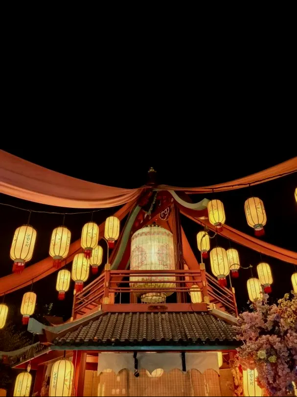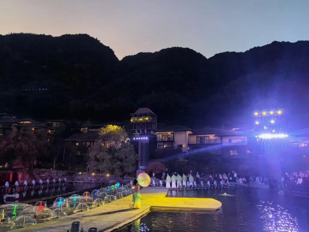 夜幕降临,葛仙村瞬间被梦幻的灯光点亮。璀璨的灯火勾勒出飞檐翘角的轮廓,流光溢彩的灯笼挂满街巷,一场精彩绝伦的古风演艺如期上演。老师们聚集于广场,欣赏着曼妙的歌舞表演,参与到热闹的互动活动中,欢声笑语在夜色里不断回荡。晚风拂过,带着山间的清新气息,大家卸下了工作的疲惫,在这诗意的夜景中尽享惬意时光。