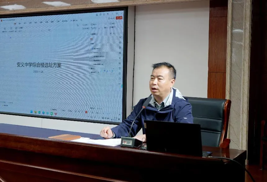 表彰的暖意尚未褪去,校园发展的美好蓝图已徐徐铺展。杜建港副书记手持规划图纸、配合清晰的PPT 演示,为全体教职工细致解读综合楼规划方案。从‘适配教学需求、兼顾教研便利‘ 的规划理念,到涵盖教学辅助空间、专属教研区域、多功能活动场所的功能布局,再到明确的建设时序与‘优化办学条件、赋能教育发展‘的预期成效,每一项内容都讲解得细致入微。台下教职工认真聆听、不时颔首,脑海中渐渐勾勒出综合楼拔地而起的模样 ——未来,这里将成为教师教研探讨的新阵地、学生成长赋能的新空间,这份规划不仅是校园硬件的升级,更承载着学校高质量发展的期许。