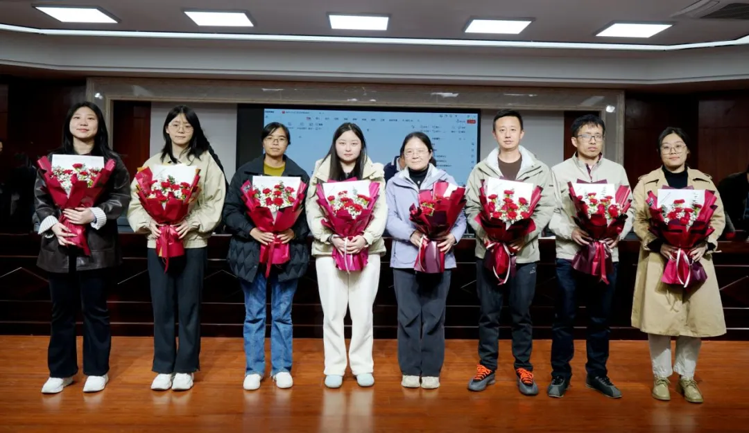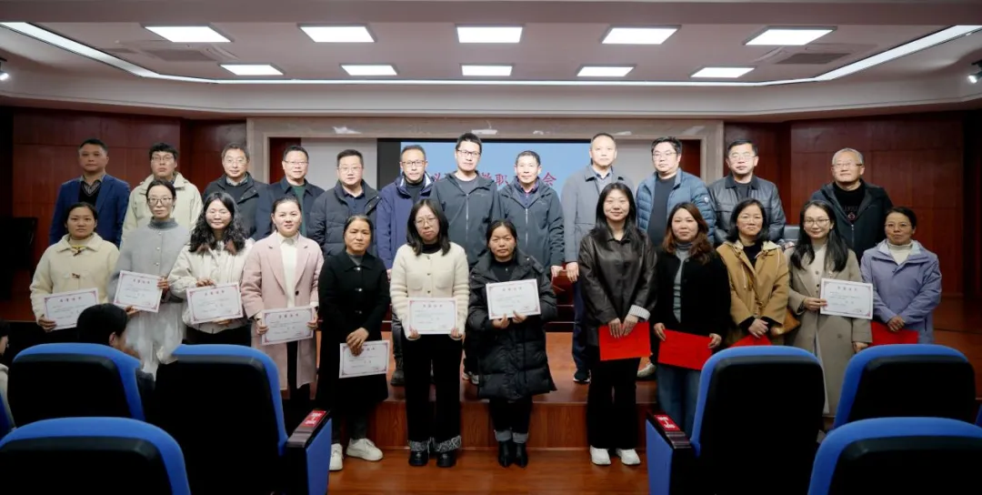 随后,校领导为获奖教师依次颁发荣誉证书与奖品,接过证书的瞬间,笑意与荣光在教师们脸上绽放,也为全场教职工立起了 ‘向优看齐‘ 的教学标杆。紧接着,罗玥副校长宣读《南昌市第七批优秀青年骨干教师(安义中学入选)名单》,我校刘洁、罗玉青、罗玥、贺晋娟、朱慧敏、熊美兰、戴巨浪、陈和善八位教师获评南昌市第七批优秀青年骨干教师。入选教师以过硬的专业功底、创新的教研思路崭露头角,这份市级荣誉不仅是对个人成长的认可,更彰显了学校青年教师队伍 ‘青蓝相继、蓬勃生长‘ 的活力,校领导为其赠送鲜花,也成为激励更多青年教师逐光前行的动力。