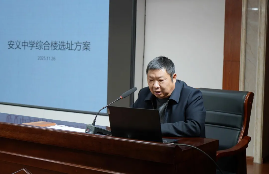 会议尾声,校党总支书记骆巧弟同志的发言如春风化雨,既凝聚力量,更指明方向。他首先向获奖教师致以诚挚祝贺,‘每一份荣誉,都是对‘立德树人’初心的践行,更是全体安中人奋斗的缩影‘,一句话道出对教职工辛勤付出的肯定;随后,他结合综合楼规划方案,强调 ‘校园建设为教育教学服务,教育教学为校园发展赋能‘,要求各部门做好衔接、协同发力,让规划蓝图落地为实景;最后,他以‘三源铸魂促辉煌‘为主题进行发言,希望全体‘安中人‘以‘儒雅‘立身,修师德之魂,做温文尔雅的‘引路人‘;以‘求实‘立业,强师能之基,做因材施教的‘实干家‘;以‘报国‘之志,铸师责之魂,做初心如磐的‘铸梦人‘。