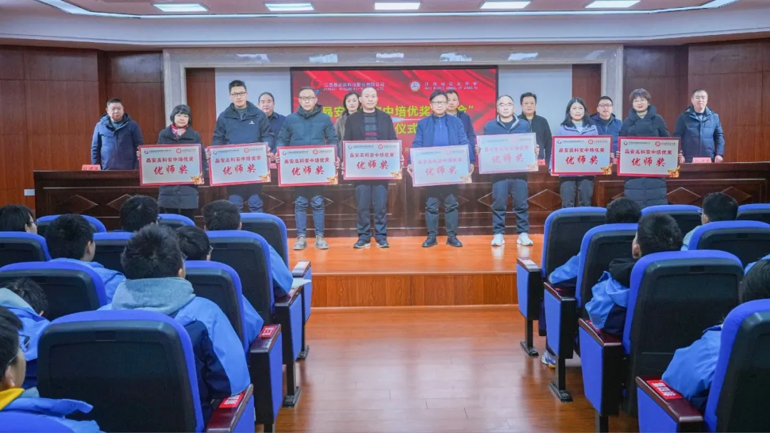 在随后举行的颁奖环节,县委常委、宣传部长杨峻,县政府副县长万菁,晶安高科党总支书记王建军、副总经理朱安华,县教体局党组书记黄峰等共同为获奖教师代表颁发 ‘优师奖‘ 匾牌,沉甸甸的奖励承载着企业对教育的敬意、政府对教师的关怀,既是对优秀教师辛勤付出的肯定,更向全社会传递了 ‘尊师重教‘ 的鲜明导向。