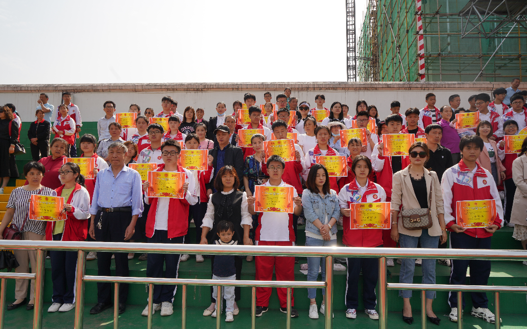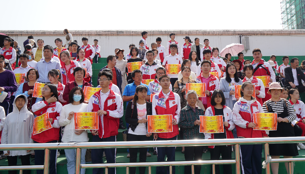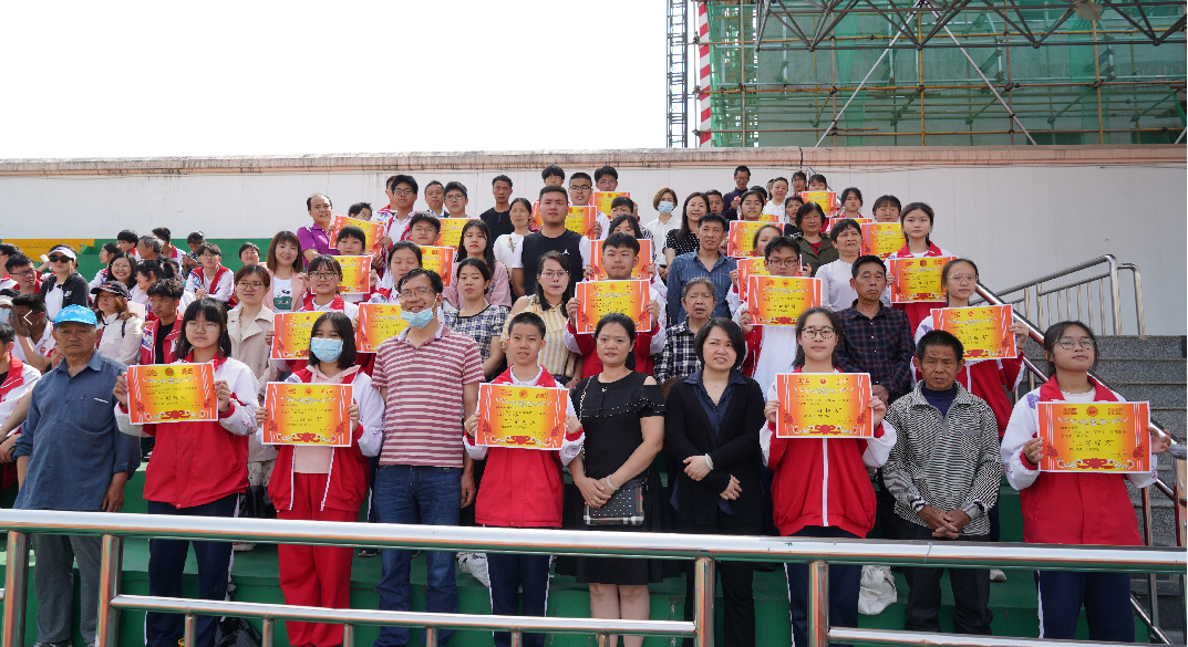 大会进行第一项:表彰获奖学生。高一高二获奖学生及家长一同上台领奖,并拍照留念。
