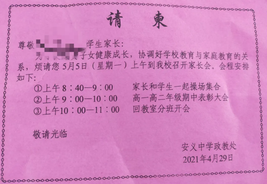 活动前,各班班主任已经向学生发放纸质的家长会邀请函。