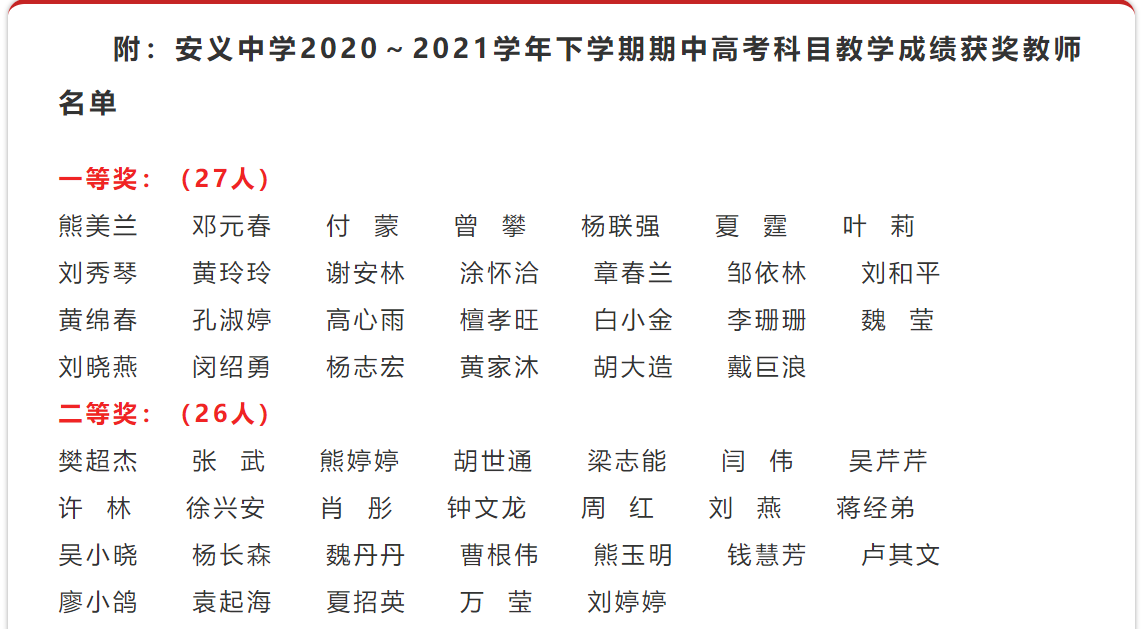 袁春副书记宣读高考科目期中教学成绩获奖教师名单,校领导颁发获得期中教学成绩一等奖教师名单。