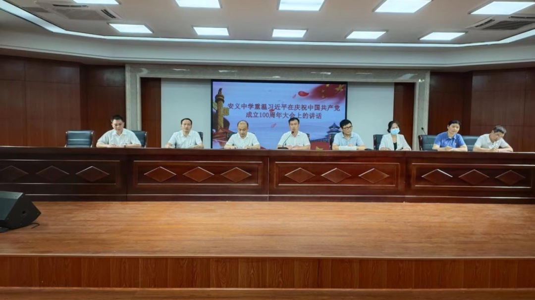 2021年7月1日,在庄严雄伟的天安门城楼,习近平总书记代表党和人民庄严宣告:‘经过全党全国各族人民持续奋斗,我们实现了第一个百年奋斗目标,在中华大地上全面建成了小康社会,历史性地解决了绝对贫困问题,正在意气风发向着全面建成社会主义现代化强国的第二个百年奋斗目标迈进。‘ 全面建成小康社会,是我们党带领人民创造的人间奇迹,是迈向中华民族伟大复兴的关键一步,在中国共产党奋斗史、新中国发展史、中华文明史上都具有里程碑意义。 习近平总书记在‘七一‘重要讲话中,深情回顾党的百年奋斗历程,高度评价党的百年伟大成就,充分显示了我们党高度的历史自信。‘三个深刻改变‘,深情讴歌中国产生了共产党这一‘开天辟地的大事变‘; ‘一个主题‘,高度概括中国共产党百年奋斗的全部内容‘四;个伟大成就‘,精辟总结中国共产党团结带领中国人民实现中华民族伟大复兴走过的光辉历程、取得的卓越功绩;‘四个庄严宣告‘,高度评价党的百年奋斗伟大成就的重大历史意义。 一百年来,我们党致力于为中国人民谋幸福、为中华民族谋复兴,致力于为人类谋进步、为世界谋大同,天下为公,人间正道,这是我们党具有历史自信的最大底气,是我们党在中国执政并长期执政的历史自信,也是我们党团结带领人民继续前进的历史自信。 骆巧弟书记强调:初心易得,始终难守,以史为鉴,可以知兴替。我们全体安中人要用历史映照现实、远观未来,从中国共产党的百年奋斗中看清楚过去我们为什么能够成功、弄明白未来我们怎样才能继续成功,从而在新的征程上更加坚定、更加自觉地牢记初心使命、开创美好未来。我们全体安中人唯有踔厉奋发、笃行不怠,办好人民满意教育,方能不负历史、不负时代、不负党和人民的殷切期望!