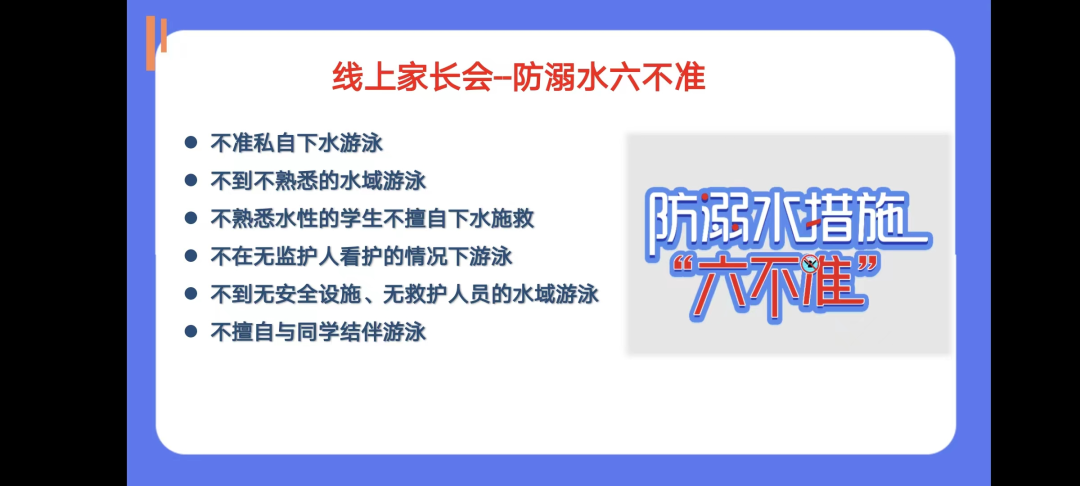 会前,老师们做了充分的准备,从认真撰写发言稿到用心制作PPT再到提前调试设备,事无巨细、细致入微,确保线上家长会有序且高质。会上,班主任老师首先就全体家长对学校教学工作的支持表示衷心感谢,并承诺将进一步改进教育教学方式,让同学们有一个更加良好的学习环境;接着,班主任老师从疫情防控、安全教育、电子产品合理使用、期末考试成绩分析、自主学习等方面入手,与家长朋友们进行了沟通交流,并提出一些具体的、有针对性的家庭教育建议,提醒家长要提高安全意识,假期注意预防溺水、交通、用电、防疫等安全事故发生,关注孩子身心健康,不断提升孩子们自主、自律的学习能力和生活能力。