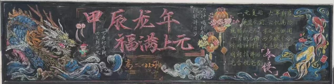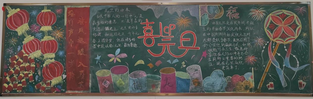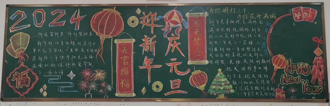 黑板报作为学校宣传的重要阵地,承载着丰富的信息和教育意义。此次黑板报评比活动不仅展示了同学们的创造力和艺术才华,也展现了他们对新年的美好祝愿和对未来的期许。通过参与评比,同学们不仅锻炼了自己的动手能力和审美能力,还培养了团队合作精神和创新意识。他们用心制作的作品不仅给校园增添了一抹亮丽的色彩,更传递了对新年的祝福和对美好生活的向往。