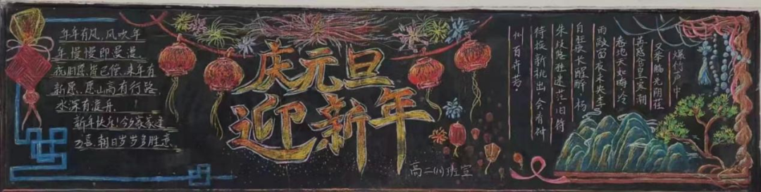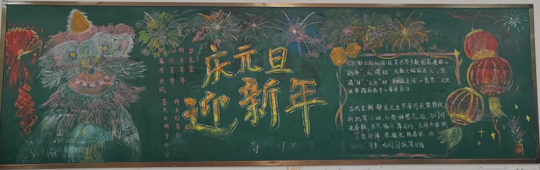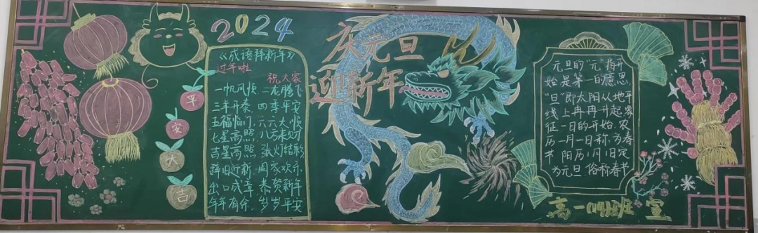 日月开新元,万象始更新。为进一步推进我校文艺活动蓬勃发展,丰富校园文化生活,活跃班级文化氛围,安义中学政教处联合高一、高二年级组于1月3日晚,开展了以‘迎新年 庆元旦‘为主题的黑板报展评活动。