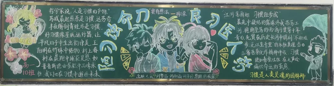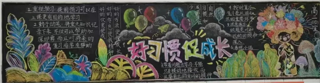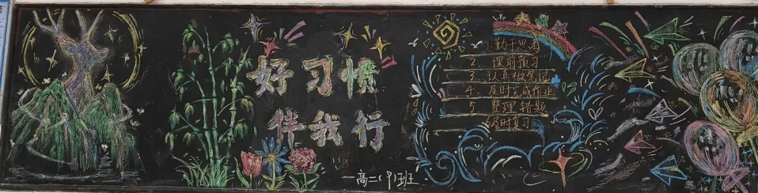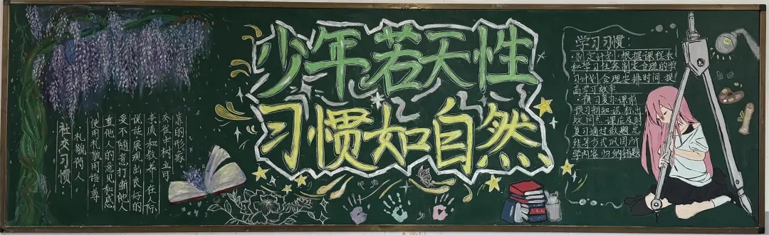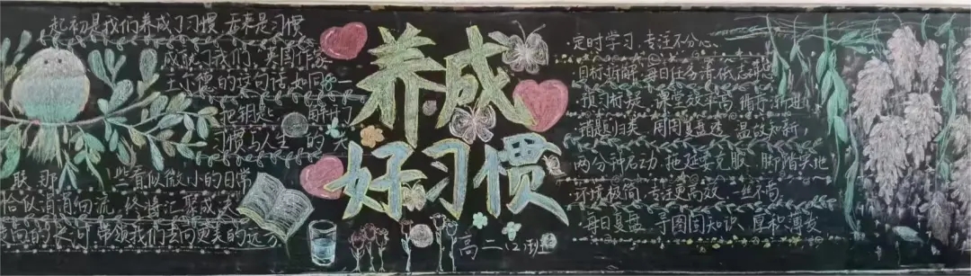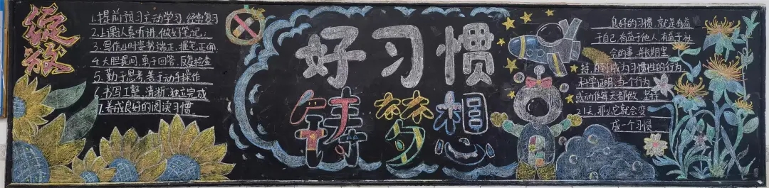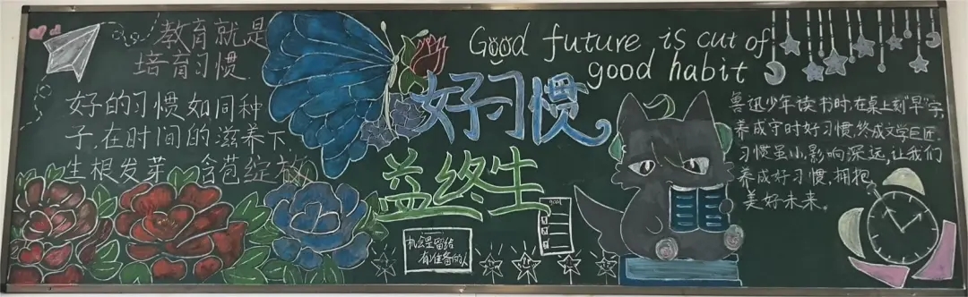 本次评比聚焦学习习惯、生活习惯、文明礼仪习惯等核心内容,鼓励各班巧妙融入名言警句、榜样故事、趣味漫画等元素,深度阐释好习惯的重要意义。筹备过程中,师生们群策群力,精心构思版面设计,以绚丽多彩的画笔、工整隽秀的文字,将对好习惯的深刻理解与追求呈现在黑板之上。