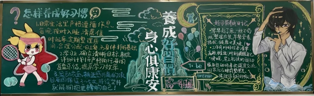 为培育学生良好品格,助力学生养成受益终身的行为习惯,安义中学政教处于4月15日组织开展‘养成好习惯,成就好未来‘主题黑板报评比活动。全校各班级积极响应,以丰富多元的表现形式,让黑板报化身为宣扬好习惯的鲜活课堂。