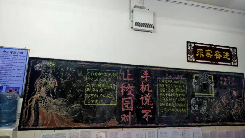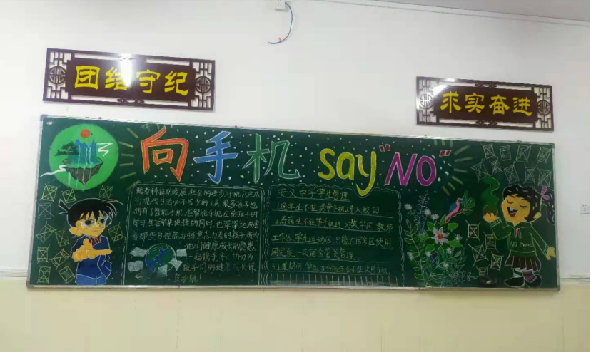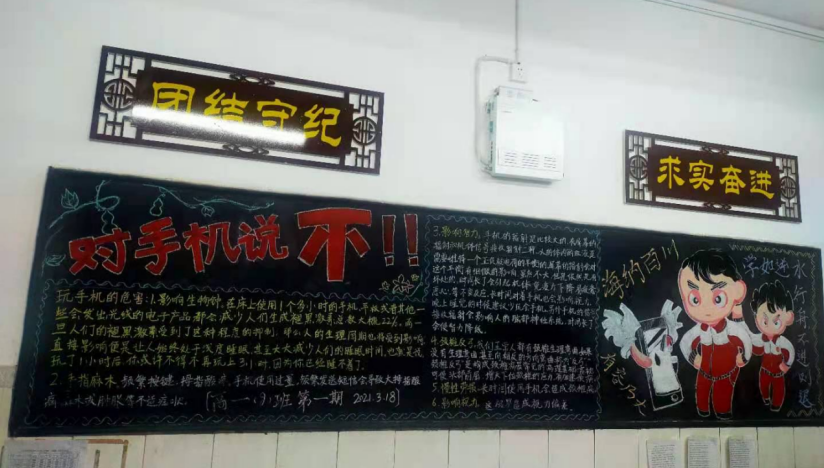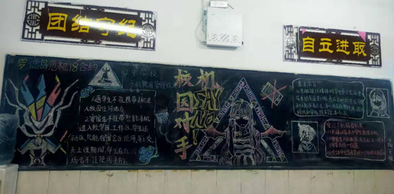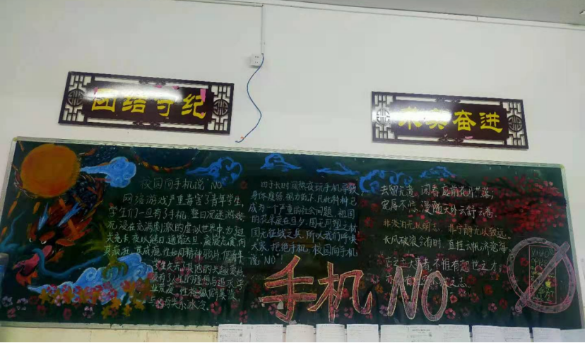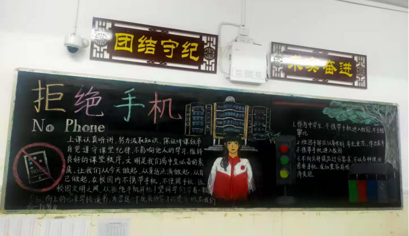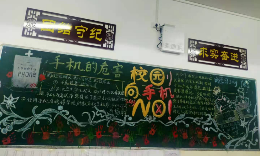 黑板报是班级文化的重要组成部分,为了丰富校园文化建设,彰显班级文化魅力,同时加大全校学生手机管理宣传教育力度,营造良好的校园文化氛围,3月24日晚,安义中学政教处开展了以“让校园对手机说不”为主题的黑板报评比活动。(