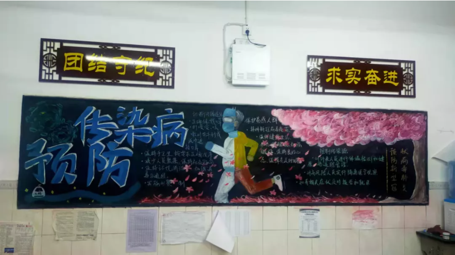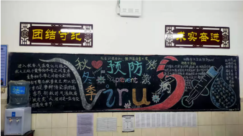 黑板报一直是我校进行文明宣传、教育的美丽风景线。通过此次活动,全校师生学习到了秋冬季传染病的预防、治疗的相关知识,同时也让同学们认识到了讲卫生对于预防疾病的必要性,极大地提高了同学们的健康意识,为营造健康、和谐的安中校园环境打下了良好的基础。