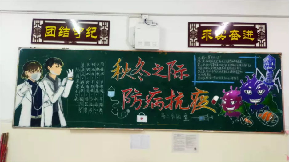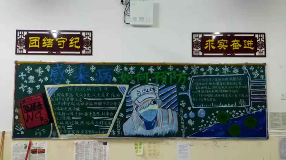 为了预防秋冬季传染病,保证师生的身体健康,打造健康、阳光校园,11月15日晚读期间,安义中学政教处联合高一、高二年级组开展了以“秋冬季传染病的预防”为主题的黑板报检查评比活动。