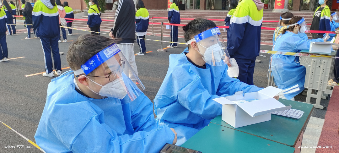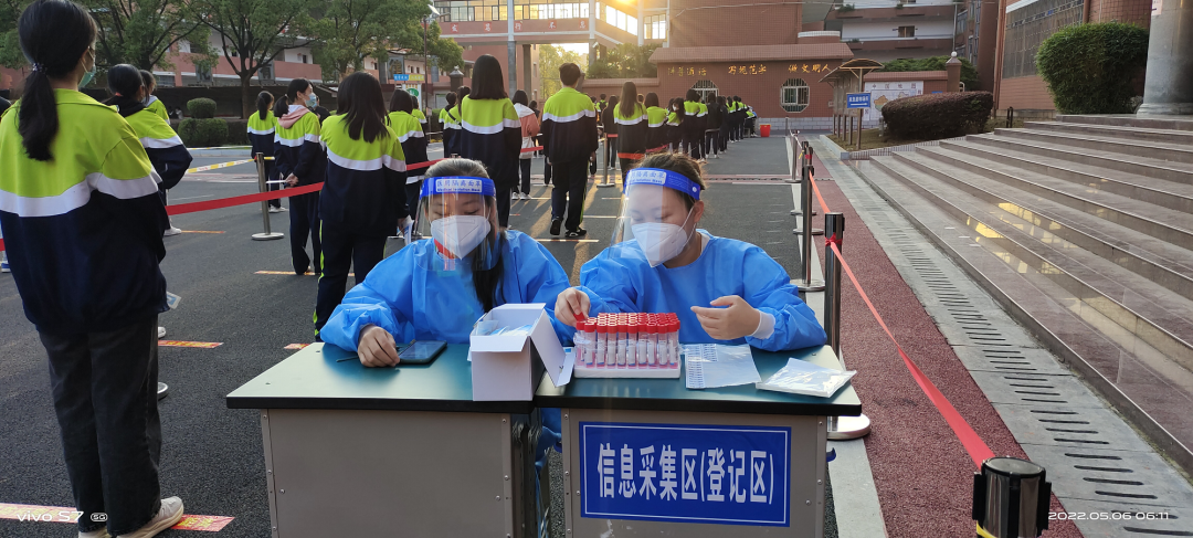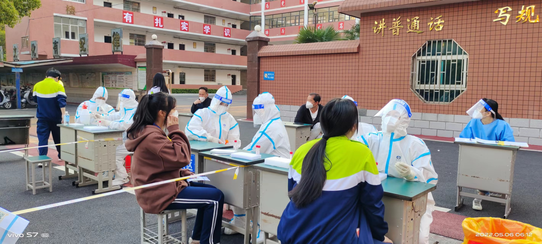 疫情就是命令,防控就是责任!为进一步筑牢学校疫情防控的防线,保障我校师生身体健康和生命安全,2022年5月6日上午,按照上级和安义县疫情防控要求,我校组织高三年级师生、食堂员工、宿舍管理员分批次进行核酸检测,此次核酸检测共有1591人参与,其中还包含了兄弟学校安义二中170名师生。校内高三年级核酸检测工作受到了上级主管部门、公安、医院等各相关单位的大力支持与帮助,安义县教体局党工委书记黄峰、县教体局体育股股长帅式扬等领导亲临我校现场指导,细致地询问了核酸检测的流程安排、人员安排和应急措施等情况。