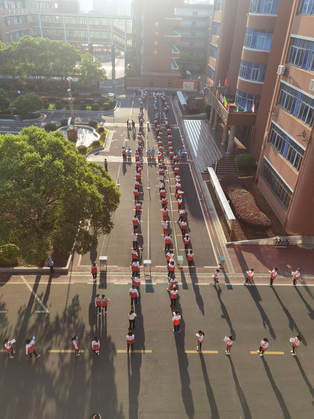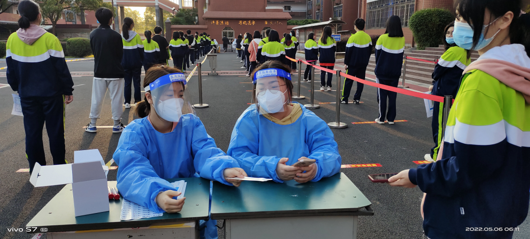 为确保核酸检测采样工作的顺利进行,安义中学成立了核酸检测工作组,进行统一部署、统一调配,提醒学生提前打印好核酸健康码,并组织12位志愿者‘冲锋向前‘,在疫情防控一线,充分做好采样前的准备工作。