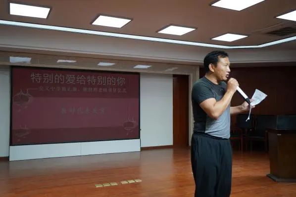 随着背景音乐响起,《特别的爱给特别的你》,活动开始,欢送会由工会主席檀孝旺主持。