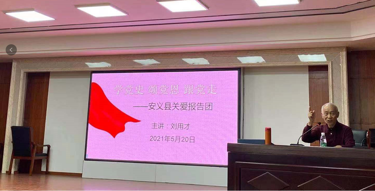 为庆祝中国共产党成立100周年,激发同学们学习党史的热情,2021年5月20日下午4点,安义县关爱报告团一行在安义中学办公楼五楼报告厅举办了一场“学党史、颂党恩、跟党走”的报告会。报告会由原板溪小学校长、关爱报告团成员刘用才老先生主讲。