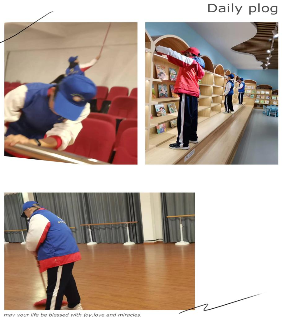 同学们来到文化馆,先是参观了馆内的陈列,接着大家拿起手中的劳动工具,有的擦桌子,有的扫地,有的擦拭墙面装饰,不一会儿的功夫,馆内就被大家打扫得干干净净。