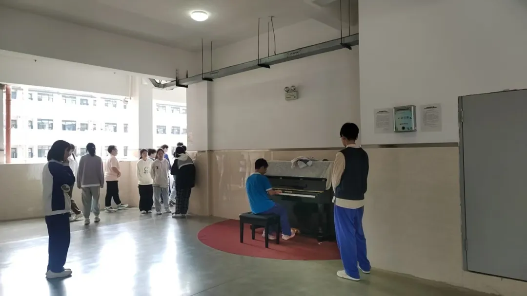 校园文化展示也是此次教学开放日的一大亮点。扶轮楼连廊区域的学生作品充分呈现了丰富多彩的校园文化,我们感受到了南昌市铁路第一中学深厚的文化底蕴和独特的精神风貌。课间学生接力弹钢琴,悦耳的声音弥漫在整个校园,让人流连忘返。