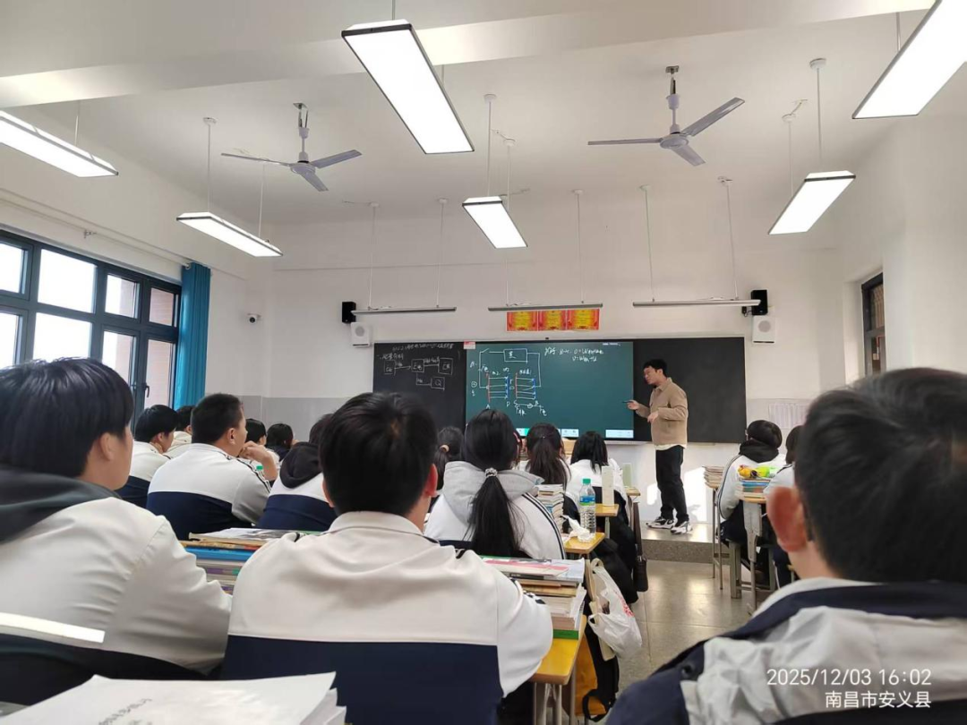 随后,安义二中曹元军老师带来别样课堂,他创新采用F非与F电区分E与u,通过能量供耗关系深化理解,更以‘消消乐‘‘基础版plus加强版‘等潮流语言点燃课堂氛围,推导过程严密且幽默风趣。