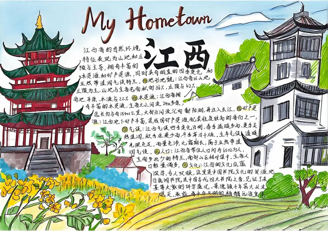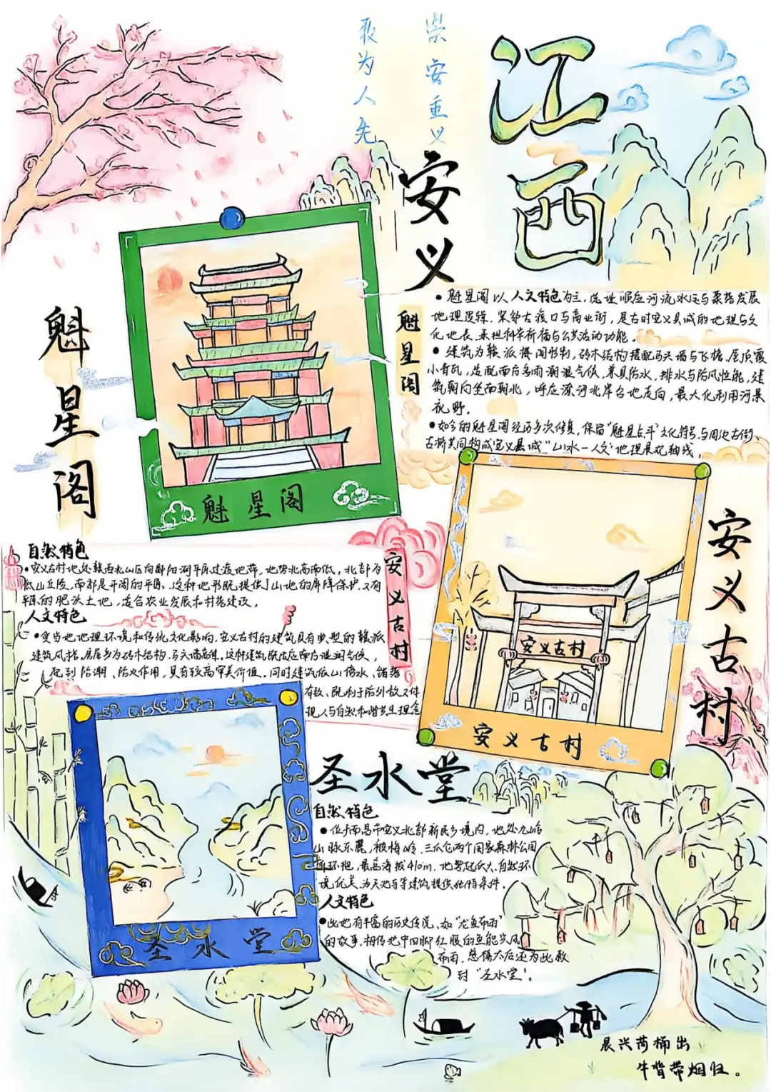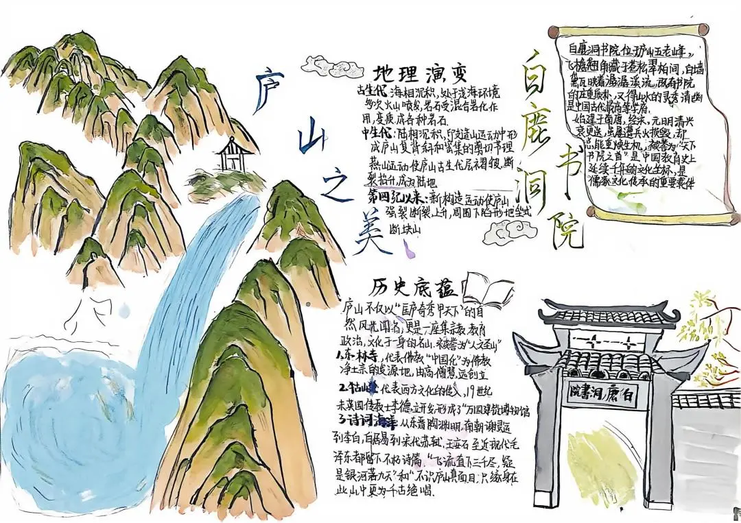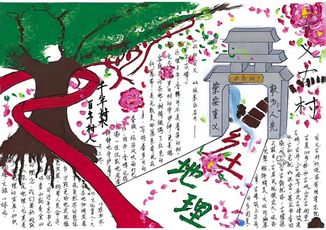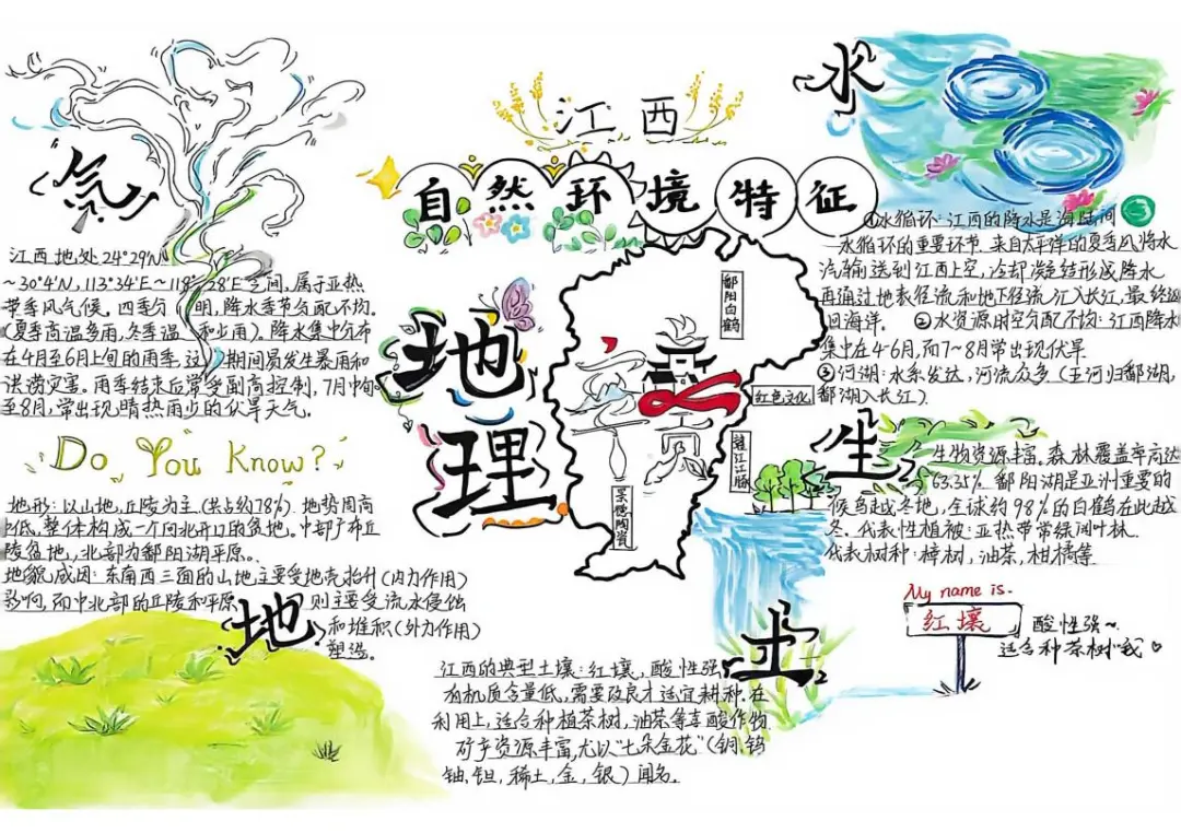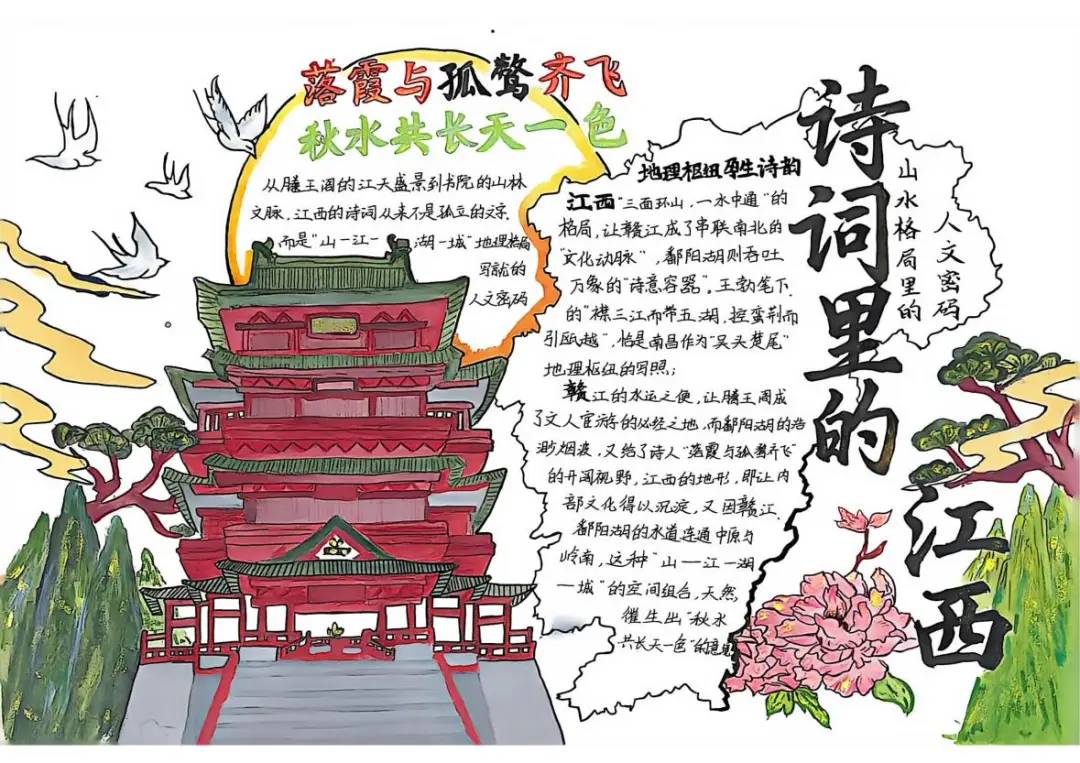 本次手抄报比赛,同学们从自然地理的鬼斧神工,到人文地理的智慧结晶,再到应用实践的地理方案,选题多样,视角独特。所有作品均原创设计、融入地理图表与教材知识点的要求,展现了安义学子扎实的地理素养和良好的审美能力。