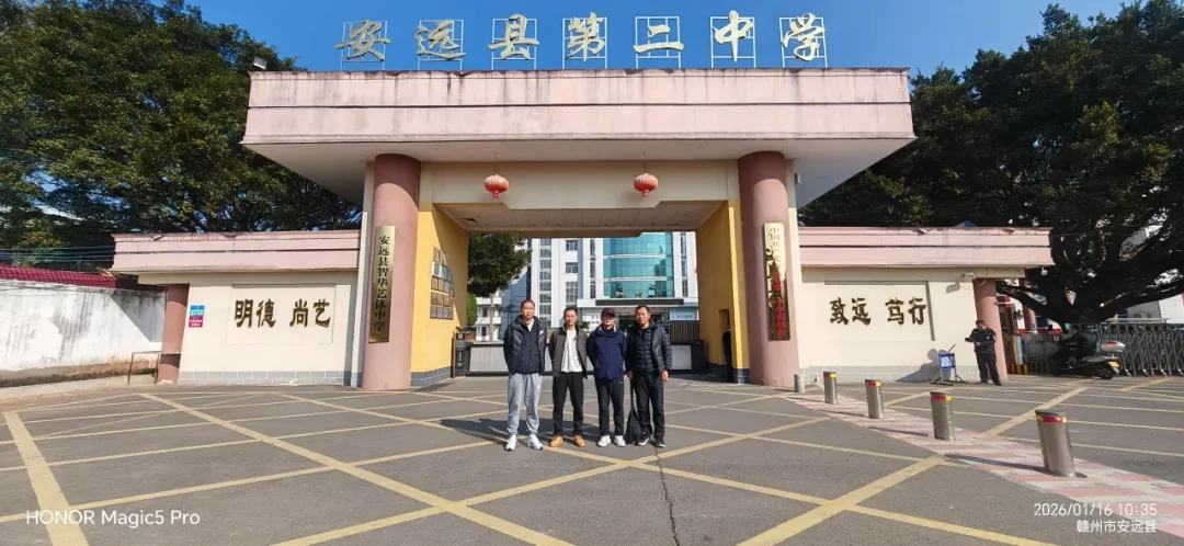 为破解安义中学体考教学瓶颈,汲取特色办学经验,2026年1月15—16日,安义中学校领导安排体育教师团队远赴赣州安远二中,开启了一场聚焦体考提质的‘求经之旅‘。作为江西省艺体办学标杆,安远二中在生源基础薄弱的背景下,凭借‘五个坚持‘办学理念,走出了自主培养艺体生的特色之路,累计培育万余名艺体本科生,其体考备考经验颇具借鉴价值。