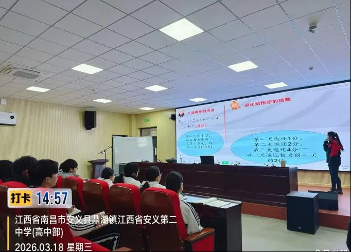 3月18日,跨校教研活动移步至安义二中高中部,两校教师围绕《等比数列的前n项和》这一重点课题开展第二场同课异构教学展示,两位老师立足学情、创新情境,用生动鲜活的课堂诠释了数学教学的灵活性与趣味性。