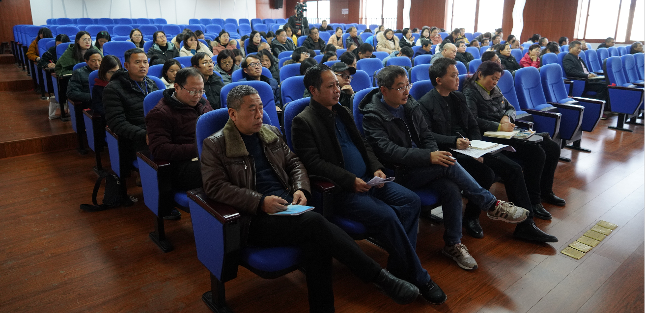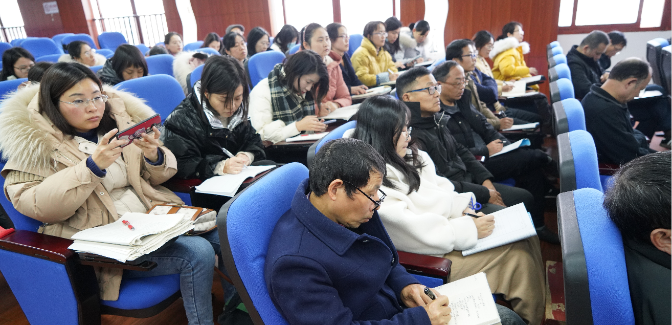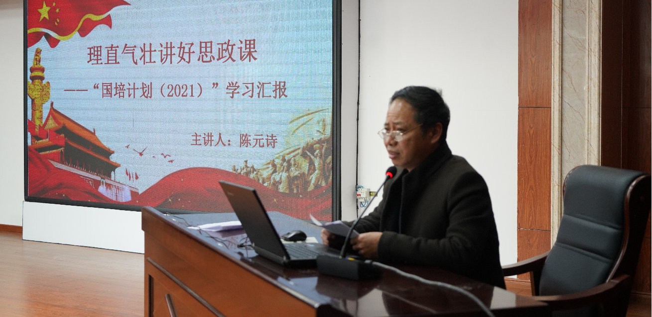 2022年1月4日下午,外面冬日暖阳依旧寒气逼人,安义中学大会议室里面却春意盎然。参加“国培计划(2021)”学习归来的陈元诗主任正在做汇报《理直气壮讲好思政课》。安义中学校长兼党总支书记骆巧弟等校领导和全校文科老师出席大会。1月5日下午全校理科老师也听取了汇报。