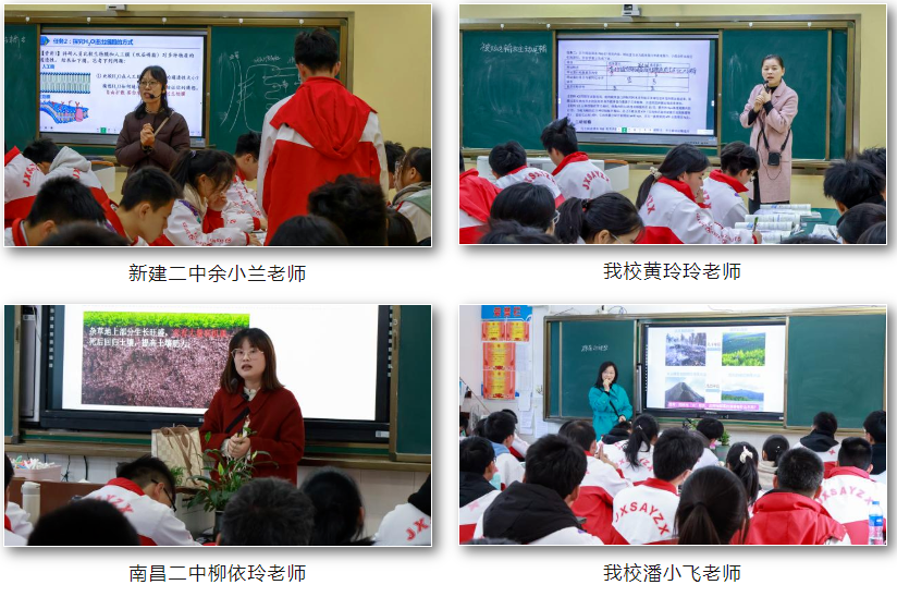 新建二中余小兰老师和我校黄玲玲老师同课异构《被动运输和主动运输》,南昌二中柳依玲老师和我校潘小飞老师同课异构《群落的演替》。