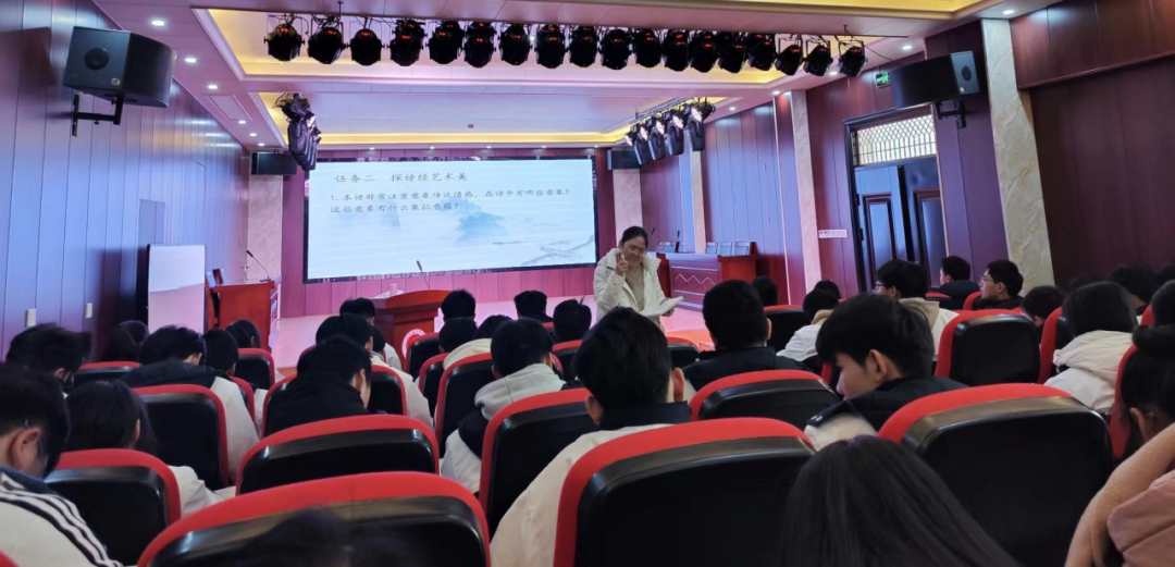 熊美兰老师此次公开课,以‘品《诗经》形象美‘、‘探《诗经》艺术美‘、‘明正确价值观‘三个任务为核心,循序渐进,深入浅出,频出亮点,获得在场师生的一致好评。