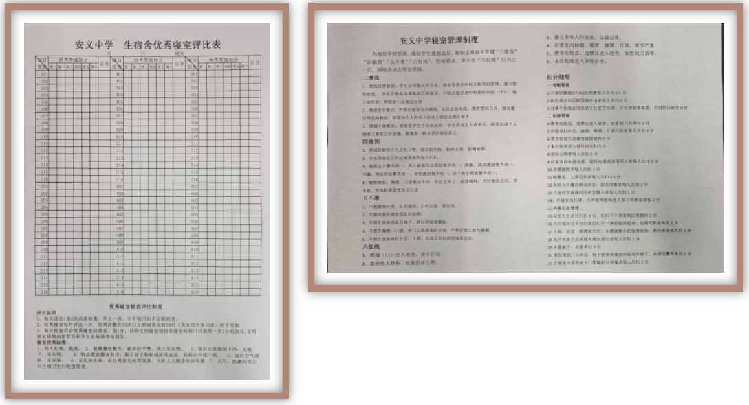 会上,闫伟老师做了“我的宿舍,我的家”的主题发言,他指出,宿舍管理的本质是生活教育,并分析了生活教育对学生成长和个人发展的意义。闫老师从宿舍管理中发现的问题切入,点明了加强寝室管理的必要性。然后,他对《安义中学寝室管理制度》《优秀宿舍评比表》进行了详细解读,明确了寄宿生的责任和义务,为宿舍管理工作的推进做了思想动员。