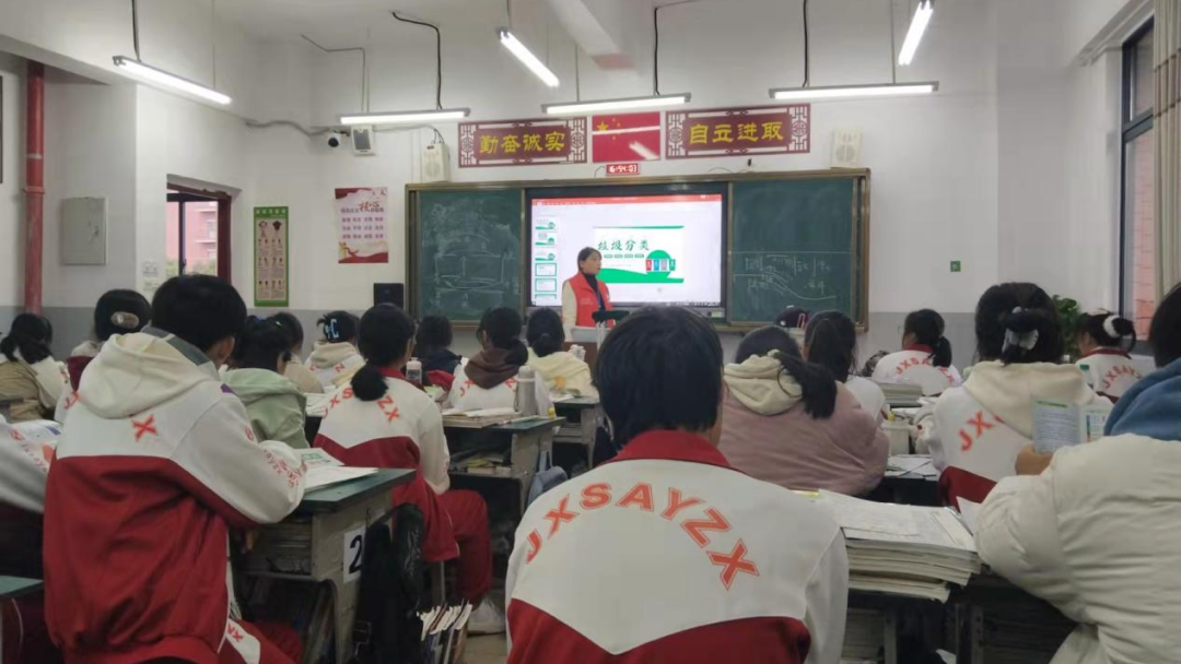 供稿:万建新 共同推进环保,构建绿色未来。2023年11月13日江西省安义中学联合安义县城镇管理局垃圾分类办公室开展‘垃圾分类你我在行动‘垃圾分类进课堂活动。此次活动背景基于垃圾分类的重要性,旨在通过此次活动,让全体学生及群众了解垃圾分类的意义,增强他们的环保意识,并提升垃圾分类投放的准确率。