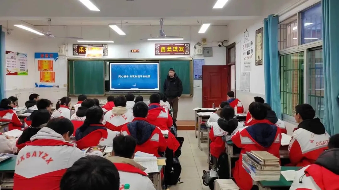 在活动期间,安义中学各班级开展了以‘同心携手,共筑平安和谐校园‘为主题的班会。班会内容丰富多样,包括消防安全、交通安全、防诈骗、防流感、校园欺凌防范等,旨在通过生动的教育形式,让学生们树立安全意识,掌握基本的安全知识和自我保护能力。