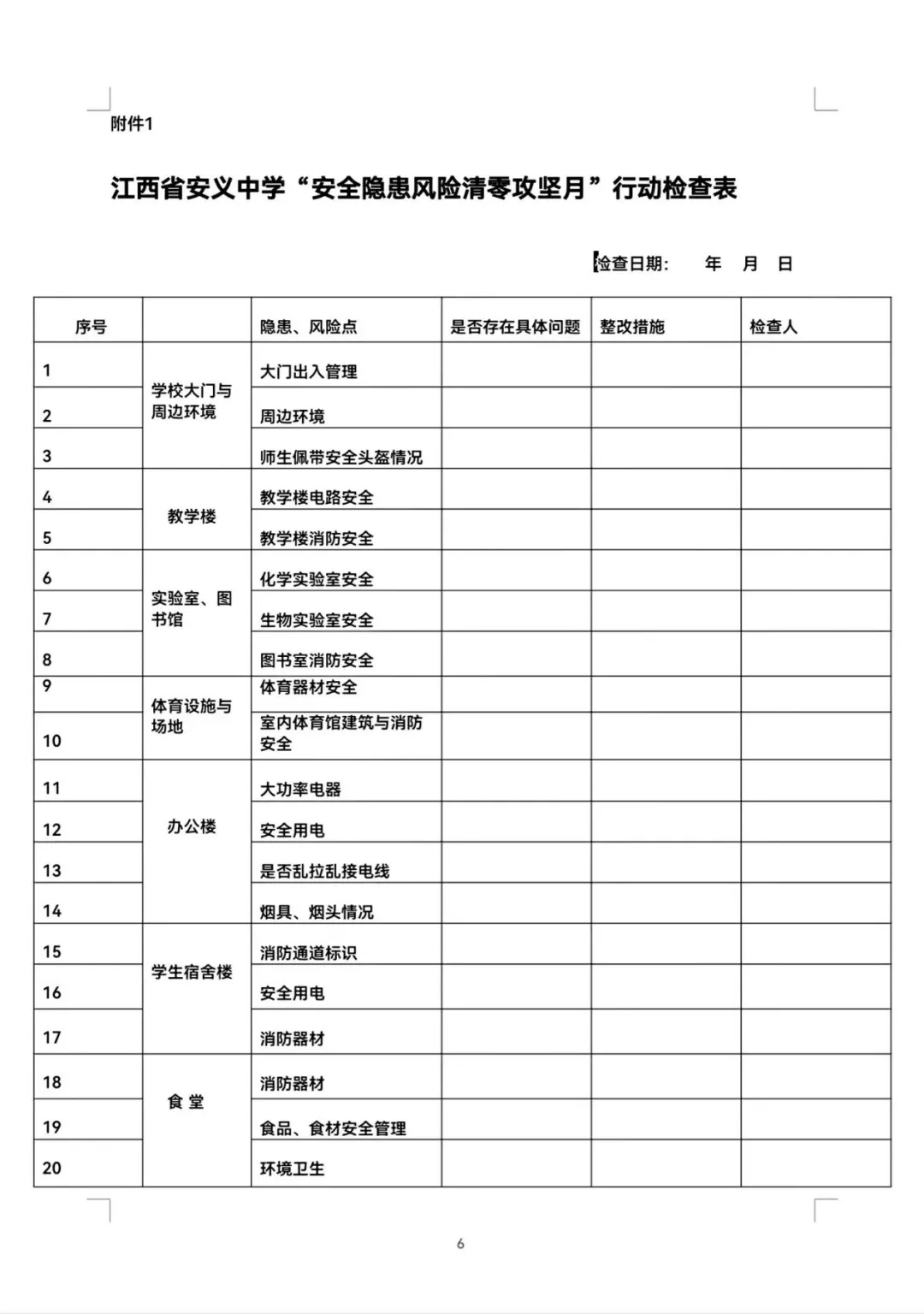 江西省安义中学开展“安全隐患风险清零攻坚月”活动