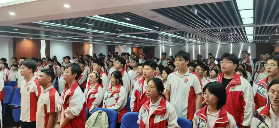 课前五分钟骆校长带领同学们一起唱团歌《光荣啊,中国共青团》,‘我们是五月的花海,用青春拥抱时代;我们是初升的太阳,用生命点燃未来.........‘同学们热情洋溢,激情满怀的歌声响彻整个会场。