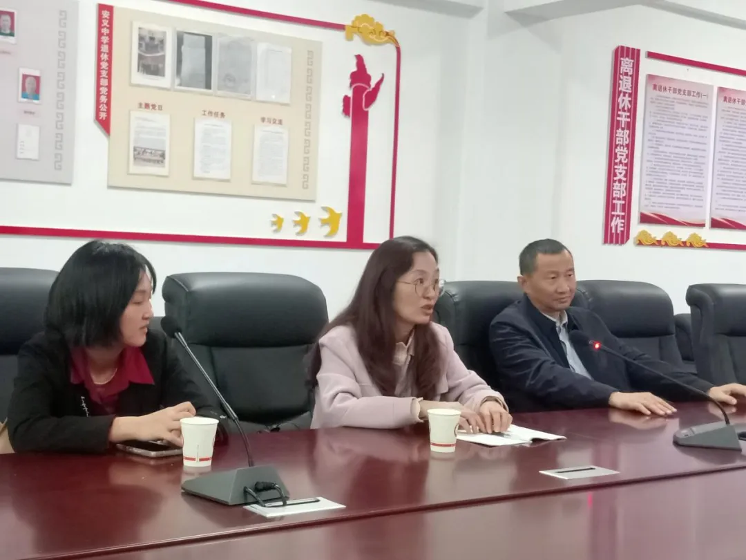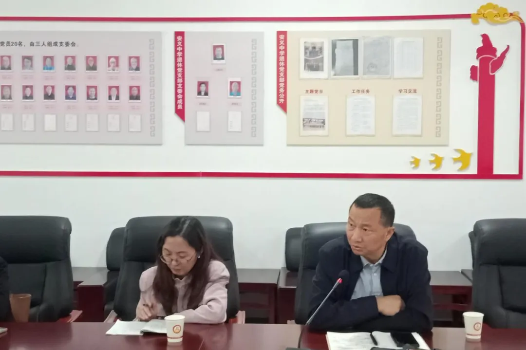 随后会议在安义中学综合支部书记朱衍强的主持中拉开帷幕,他简略概述了学校2024年教科研工作,指出了教师专业发展规划及培养方面碰到的难题;接着张琼文老师介绍了安义中学的协同提质课题《协同提质背景下安义县域学校‘本色‘文化课程体系建设的实践研究》开展情况;之后骆书记就安义中学‘本色‘文化建设进行了阐述,指出最是文化能致远,并对安义中学楼名、路名进行了讲解;然后安义中学党总支副书记杜建港同志也讲了自己的感想;最后安义中学正高级教师万晓军老师就课题的构建、规划提出了自己的看法,指出要充分利用本校、本县资源,借鉴外校、外地区做法,扎实推进课题建设。