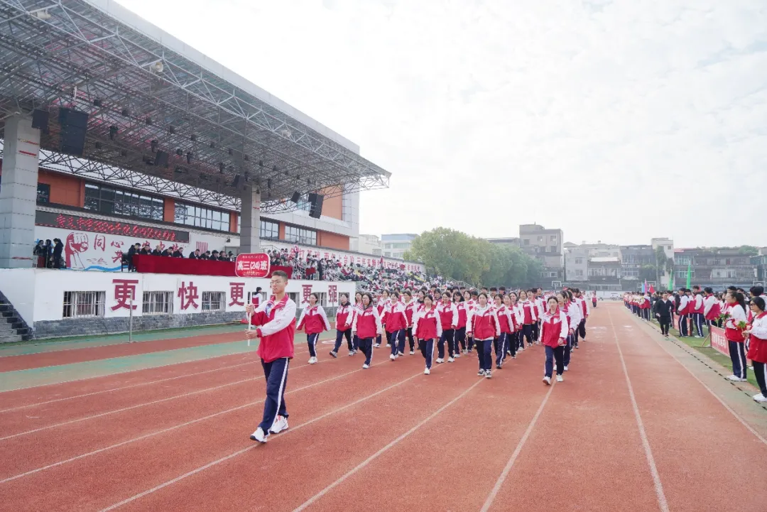 旌旗招展,步履铿锵。各班方阵依次入场,英姿飒爽,气势如虹。学子们身着统一服饰,口号嘹亮,展现班级风貌,彰显青春活力。