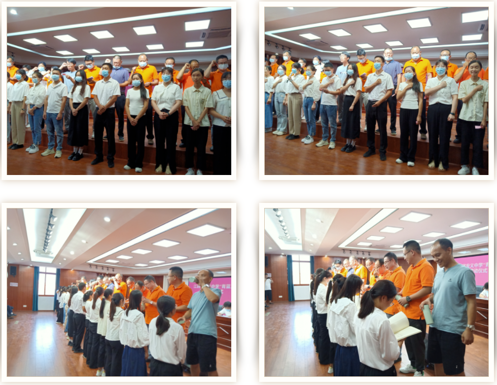 拜师仪式上,17位老教师集体宣誓将其所学尽其所能交与后辈!17位新教师随即致谢老教师并承诺将努力学习不负师之所望!宣誓完毕,新教师诚意满满地向各自的师父敬茶,师父饮完茶,向徒弟回赠了精美笔记本,每本笔记本的扉页都写上了对徒弟的美好期许与谆谆教诲。为见证这一庄严的时刻,师徒分别在承诺书上签名。