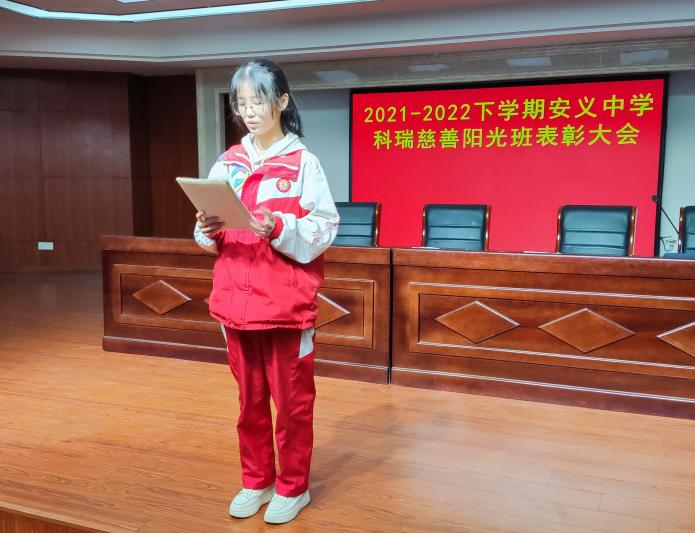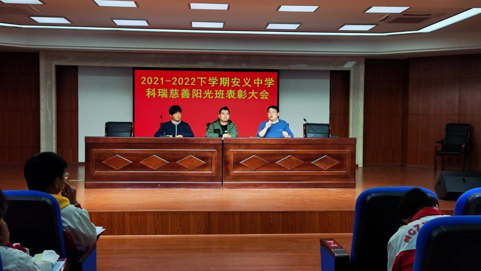 时光荏苒,科瑞慈善阳光班已经迈入第三学年,为了进一步激发阳光班少年们的学习积极性,充分调动学生的学习热情,以高昂的斗志冲刺高三。10月28日晚7点,我校在办公楼五楼公议室举行了安义中学科瑞慈善阳光班2021-2022学年度期末总结表彰大会。杨志宏校长助理、学生处许林主任、黄磊副主任、闫伟老师、万建新老师以及50位阳光班同学们参加会议。会议由科瑞慈善阳光班班主任黄磊老师主持。