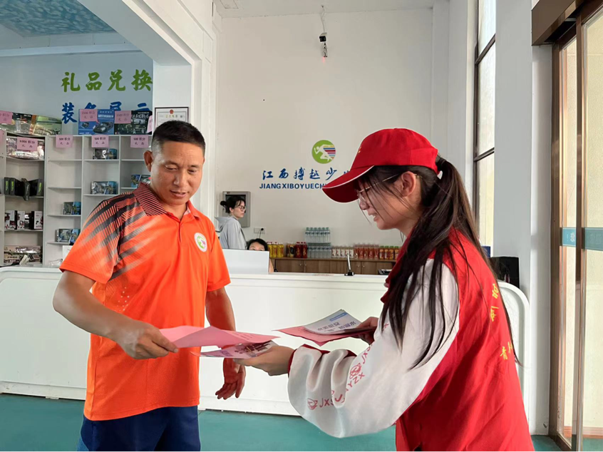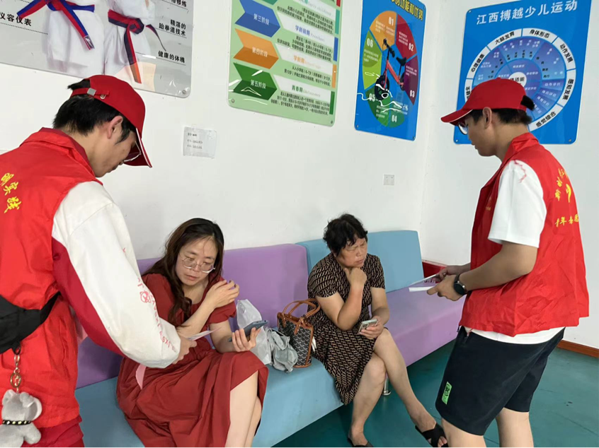 6月29日,安义中学教师志愿者带领学生志愿者走进龙安社区新时代文明实践站,开展防溺水安全宣传活动。