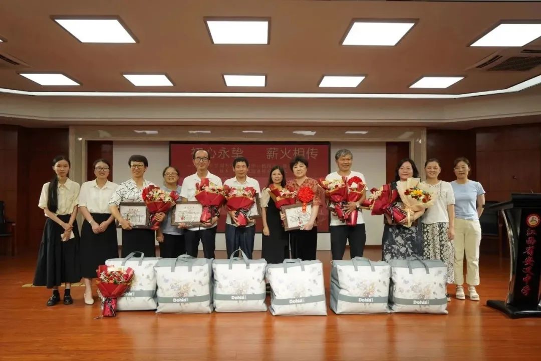 年轻教师们微笑着,为退休老教师献花赠礼,给老教师们带去真挚的祝福,并留影纪念。一句句温暖的话语、一捧捧鲜艳的花束,置身其间,所有人脸上都洋溢着幸福,这份安中情意将绵延在大家心里。